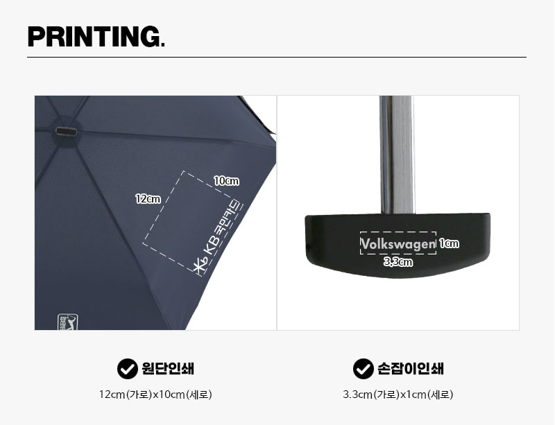 환경 정책이나 환경운동단체, 환경의 날 기념품 굿즈 홍보용품 등으로 활용함에 있어 더욱 확실한 홍보 기념 효과를 위해 우산 원단과 손잡이에 인쇄가 가능합니다.