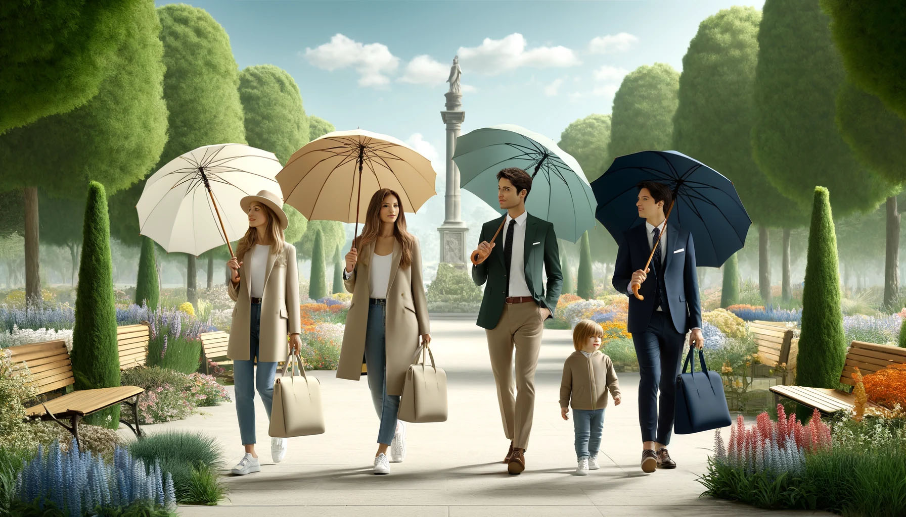 지속 가능한 친환경 원단 RPET 원단 우산의 컬러는 감각적인 디자인과 함께 모던하면서도 고급스러운 아이보리, 톤다운된 라이트블루, 고풍스럽고 정갈한 카키그린, 산뜻하고 무난한 네이비의 총 4개의 컬러 색상으로 제작됩니다.