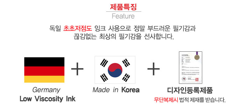 - 부드러운 흐름: 고르게 잉크가 흐르도록 설계되어 필기할 때 부드럽고 일정한 느낌을 줍니다.