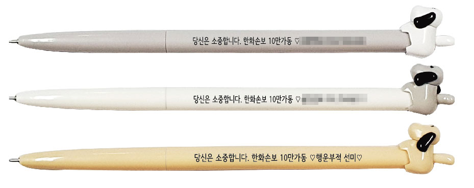 홍보 판촉 사은품 굿즈 국산 댕댕이 니들 볼펜 독일잉크 초초저점도 제품은 한화손해보험에서 제작을 의뢰 하셔서 진행된 건으로, 인쇄 품질과 제품 품질, 그리고 개별 OPP포장까지 최고의 서비스를 제공해, 감동 받으셨다며 별도 감사 인사까지 해주셨던 건입니다.