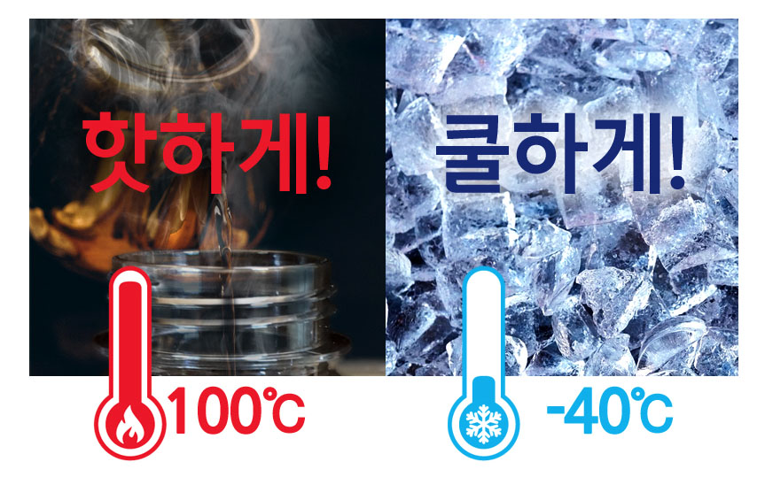 영하 40도까지 견딜 수 있어 물을 담아 얼려 음용을 할 수도 있습니다.(단, 무리한 온도에서의 장시간 사용은 변형이 올 수도 있습니다)