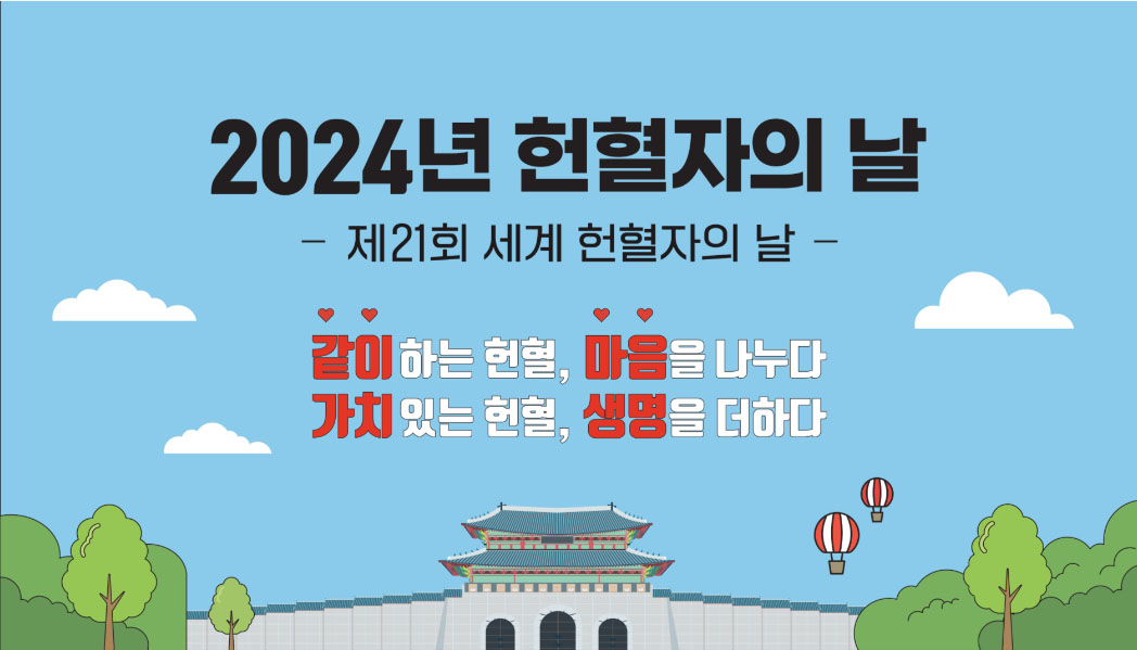 세계 헌혈자의 날인 6월 16일(금)부터 17일(일)까지 3일간 진행되는 행사로, 보건복지부 주최 대한적십자사 주관으로 광화문광장 놀이마당에서 다양한 전시 체험 행사가 진행 됩니다.