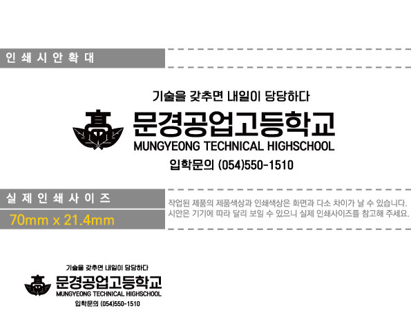보통 학교 교표(로고)의 경우 ai 버전을 보유하고 있는 학교가 잘 없는데, 문경공업고등학교 교표는 아주 깔끔하게 교표를 ai 버전으로 전달 해주셔서 시안 작업은 비교적 쉽게 진행이 되었습니다.