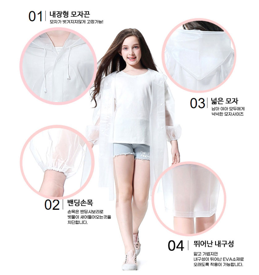 에바 레인코트, 고급 두꺼운 우의 컬러별 다회용우비 성인용 아동용 레인코트