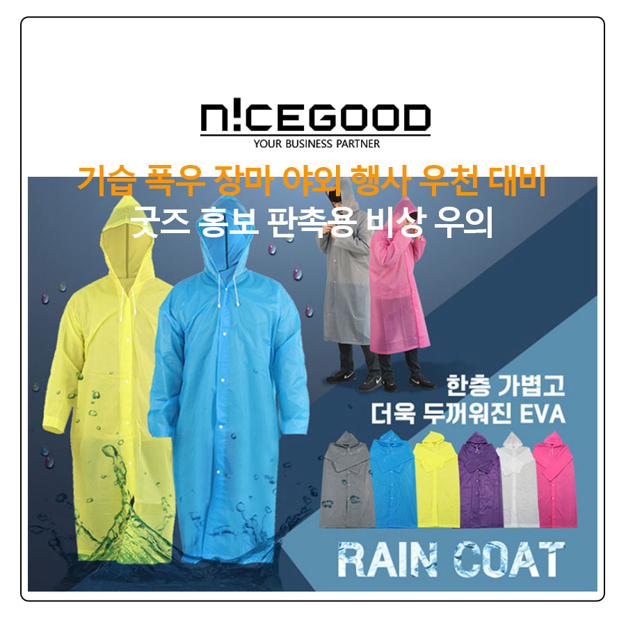 판촉물 기념품 나이스굿>우산,우의/장화-EVA 우의, 우비,기념품, 답례품, 단체선물, 분양사은품, 모델하우스, 창립기념일, 행사기념품 상품 상세페이지