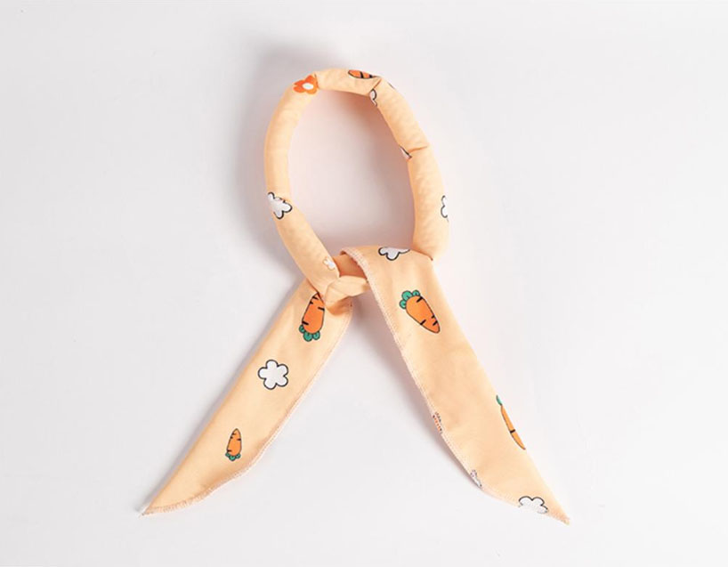 중앙의 냉매를 기준으로 스카프를 착용하듯 끝 부분을 묶어만 주면 되는 간편한 착용 방법이 장점이며, 냉동실 또는 냉장실에 15분 정도만 넣어둬도 1시간 정도는 냉감을 유지할 수 있습니다.
