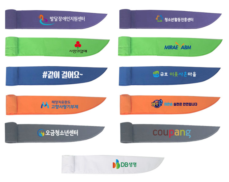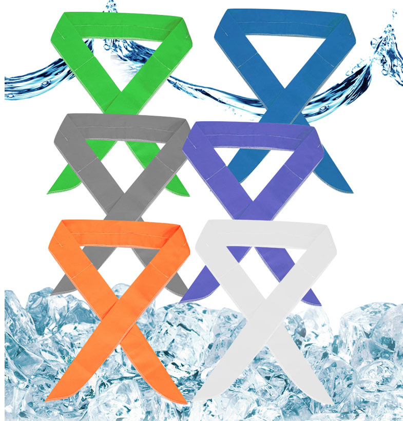 관공서 보건소 공공기관 보건복지 폭염 대비 홍보 굿즈 쿨스카프 컬러 색상은 그린, 블루, 그레이, 퍼플, 오렌지, 화이트 총 6개의 색상으로 제작이 가능하며, 실크 1도 단색 인쇄나 컬러전사인쇄가 가능합니다.