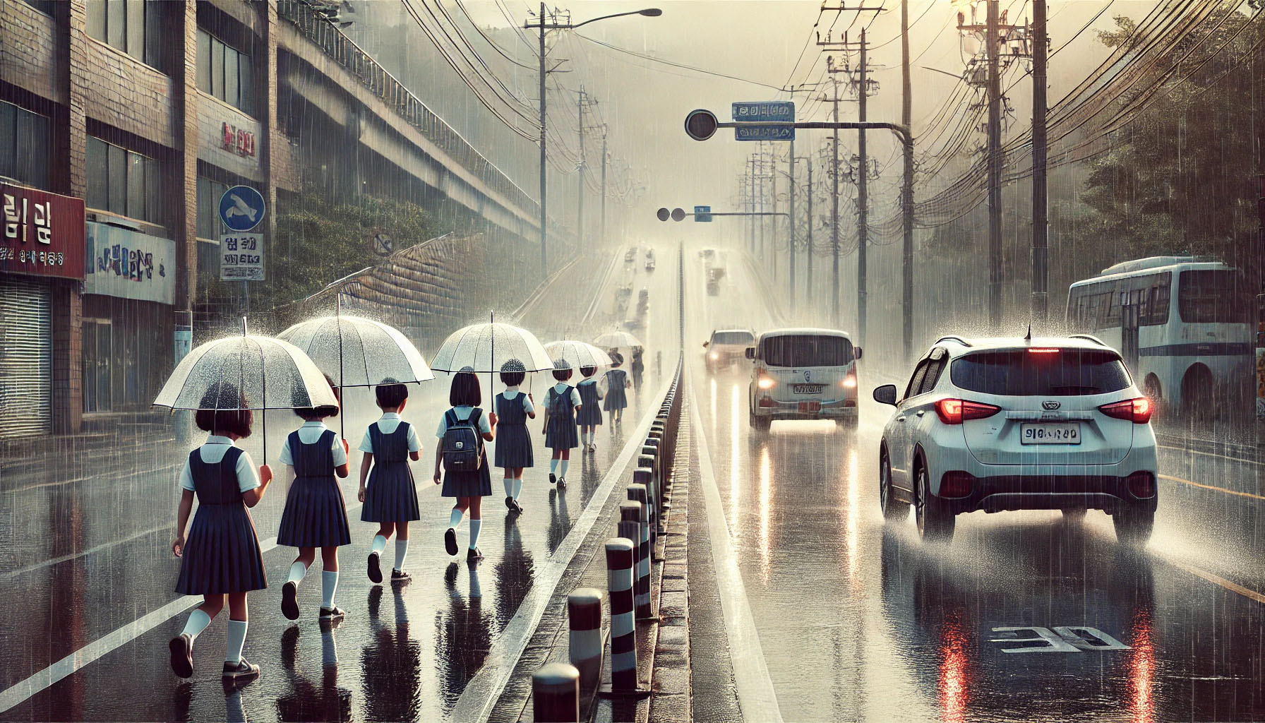 비가 오는 날에는 맑은 날에 비해 보행자나 어린이들의 시야가 좁아지고 자동차 운전자 역시 가시거리가 좁아집니다.