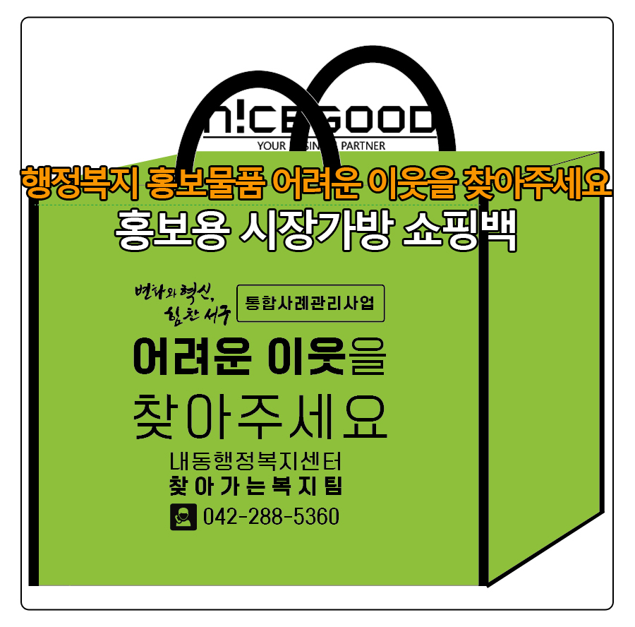 #행정복지 #홍보물품 어려운 이웃을 찾아주세요 #시장가방 쇼핑백은 행정복지센터에서 통합사례관리사업의 중 하나로 진행하는 지자체별 주민복지사업입니다.