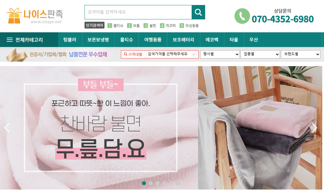 나이스굿은 #나이스기프트, #나이스판촉, #한국판촉, #한국판촉물유통센터, #한국판촉와이맘 등 6개의 전문몰을 운영하고 있어 국내에서 유통되는 모든 제품을 취급하고 있으므로,