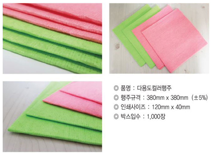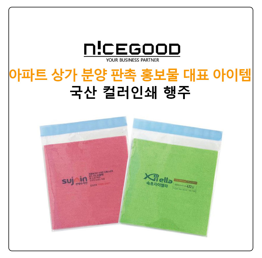 흡수력과 빠른 건조라는 장점을 가진 아파트 상가 분양 홍보 판촉용 국산행주는 자동차, 야외활동, 가전제품 청소, 가구 청소에도 탁월한 효과를 자랑합니다.