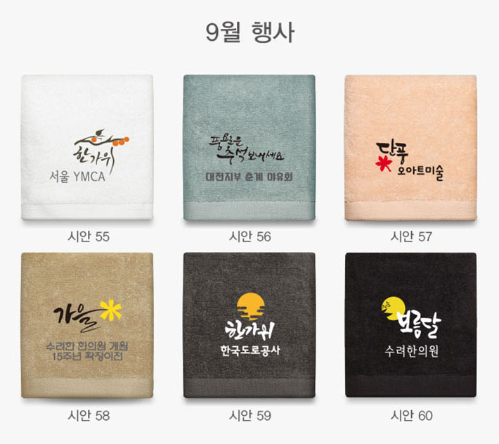 9월은 기념품으로 활용으로는 추석 한가위, 추계야유회, 등산동호회 외에도 한의원, 봉사단체, 자선단체 홍보 기념품으로 활용