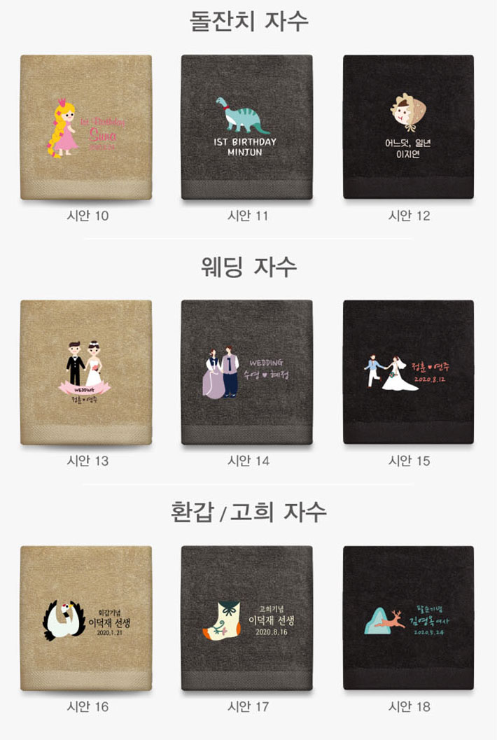 우산, 텀블러, 보틀, 물티슈와 더불어 기념품 메인아이템으로 꾸준하게 주문을 주시는 수건_타월은 고급스러운 디자인과 함께 국산제품이 대부분이어서인지 안심하고 선물할 수 있는 행사 기념품