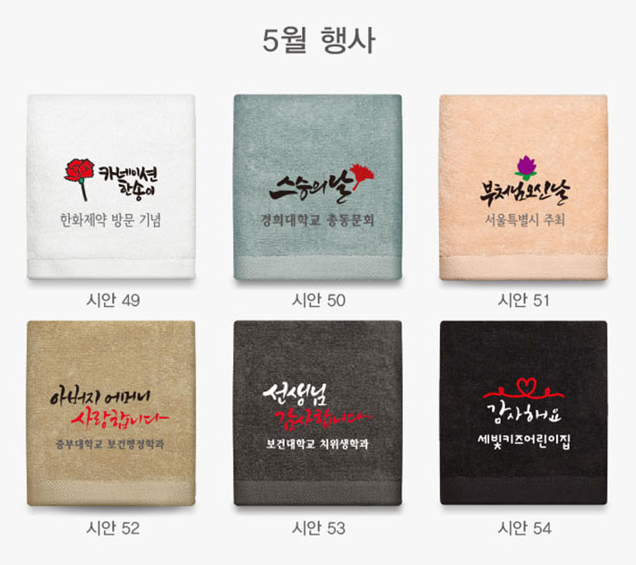 행사 기념 홍보 답례 증정품 캘리그라피 디자인 수건 타월의 활용에 대해 자세하게 소개를 드립니다.