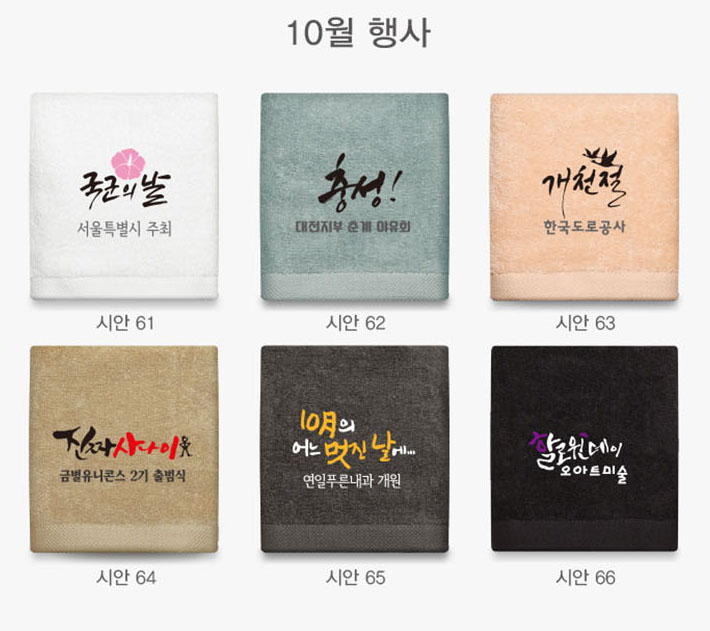 10월 기념품 홍보용 수건 타월 활용은 국군의날 개천절 기념식 등에 활용이 가능합니다.