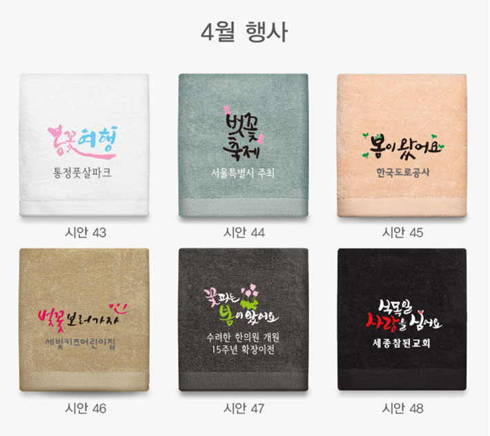 4월 행사 기념품 홍보용 타월로는 지자체 축제, 벗꽃축제 등 봄꽃 축제와 관련된 홍보물로 활용