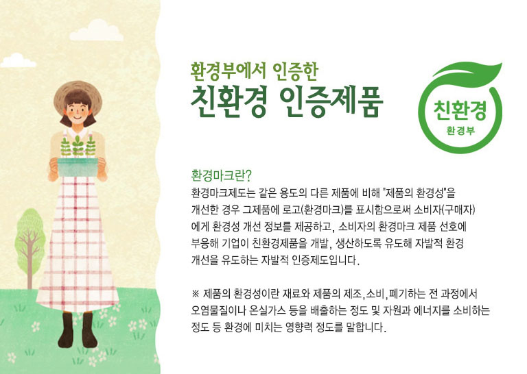 환경부에서 인증한 친환경 인증제품에는 친환경마크를 적용할 수 있는데요.