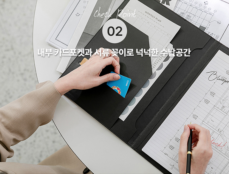 다양한 수납공간으로 중요한 서류부터 명함, 카드, 메모지 등을 보관할 수 있으며, 합리적인 원단 선택과 후가공으로 기존에 볼 수 없었던 가격대비 퀄리티를 자랑합니다.
