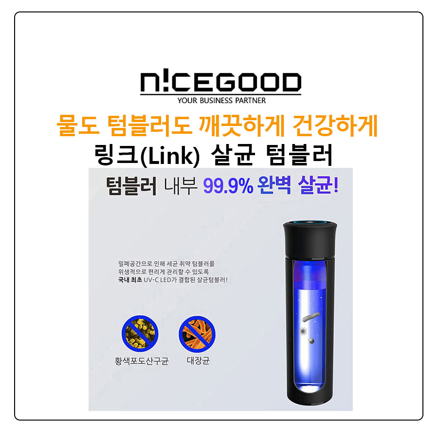 텀블러 99.9%, 물 99.9% 살균능력을 자랑하는 링크 살균 텀블러는