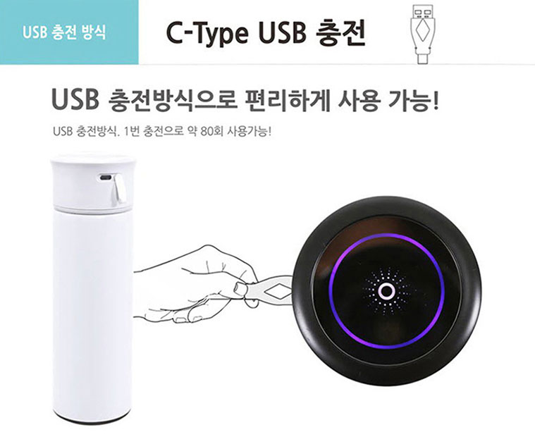 기본 기능으로는 부족하다~C타입 USB 충전방식으로 1번 충전으로 약 80회 살균기능을 사용 가능
