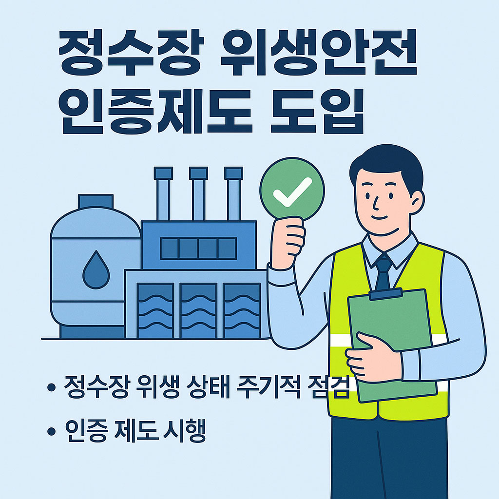 #정수장 #위생안전 #인증제도 도입: 수돗물의 안전한 공급을 위해 정수장의 위생 상태를 주기적으로 점검하고 인증하는 제도가 시행됩니다.