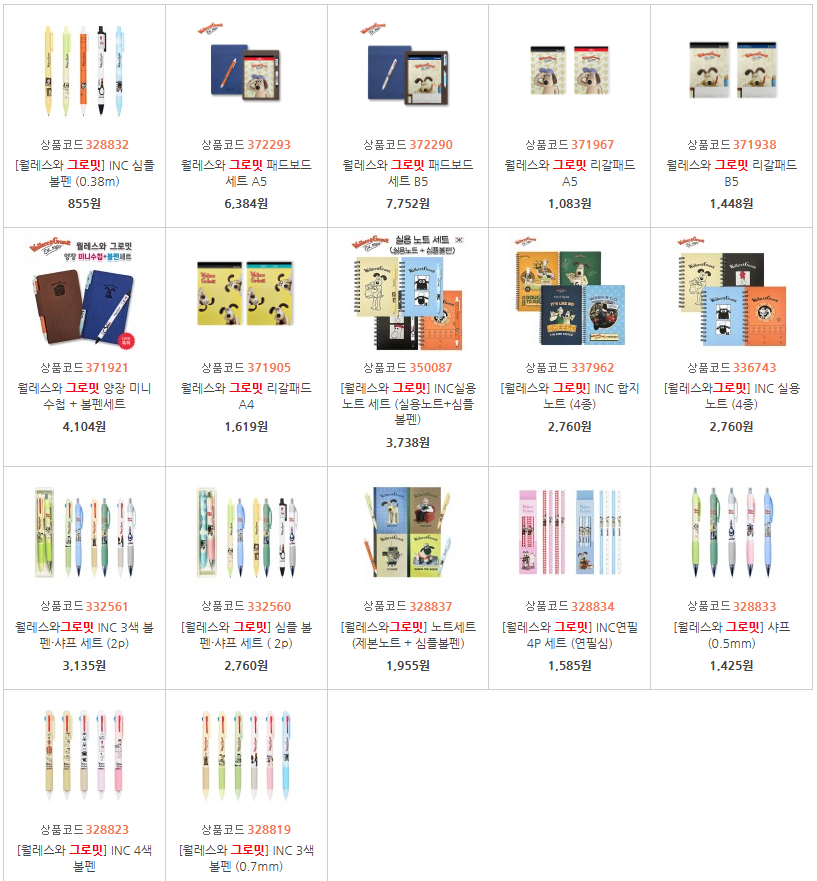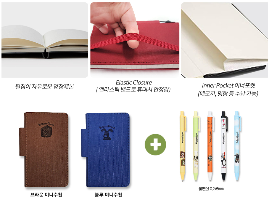 오늘 소개드릴 제품은 웰레스와 그로밋 캐릭터가 적용된 양장미니수첩+볼펜세트입니다.