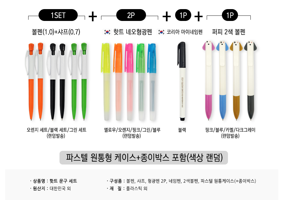 이 외에도 판촉물 기념품 사은품이나 답례품 등으로 활용이 가능한 볼펜, 샤프, 형광펜, 네임펜, 2색볼펜을 원통형 케이스에 담아 선물용으로 각광 받는 문구세트까지, 나이스굿에서 특판으로 판매하고 있으니 고민은 접어두시고 전문몰에서 확인해 보시기 바랍니다.