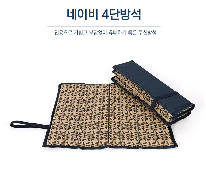 쿠션과 신축성 좋은 고무밴드로 휴대성까지 겸비하고 양면 사용이 가능하면서도 가성비까지 확실한 접이식 1인용 4단방석은 매트 손상이 덜하도록 커버가 적용되어 있어 견고함까지 충족시킨 아이템입니다.
