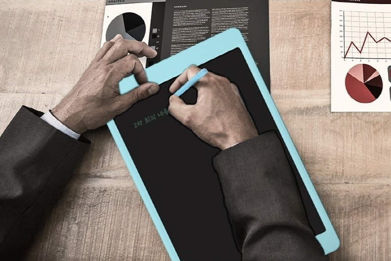 슬림한 디자인의 LCD 전자노트패드는 실제 종이노트 보다 훨씬 얇은 두께인 9mm로, 휴대나 보관이 용이하며, 사용 시에도 이물질이 발생하지 않아 깔끔하고 깨끗한 사용환경을 제공합니다.