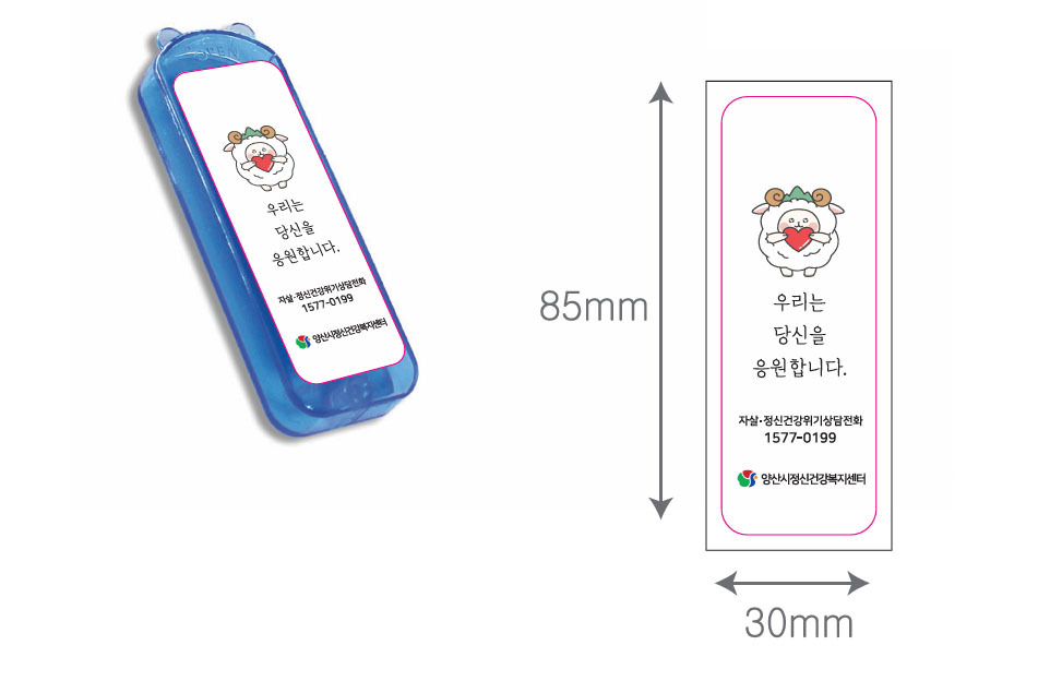 #기관명, 캠페인 메시지, 정신건강 #슬로건 등을 스티커 부착 형태로 인쇄 가능