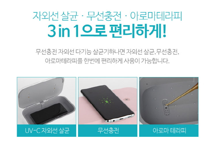 무선충전기 겸용 자외선 살균기에 아로마테라피까지 It's an ultraviolet sterilizer that can be used as a wireless charger and aroma therapy