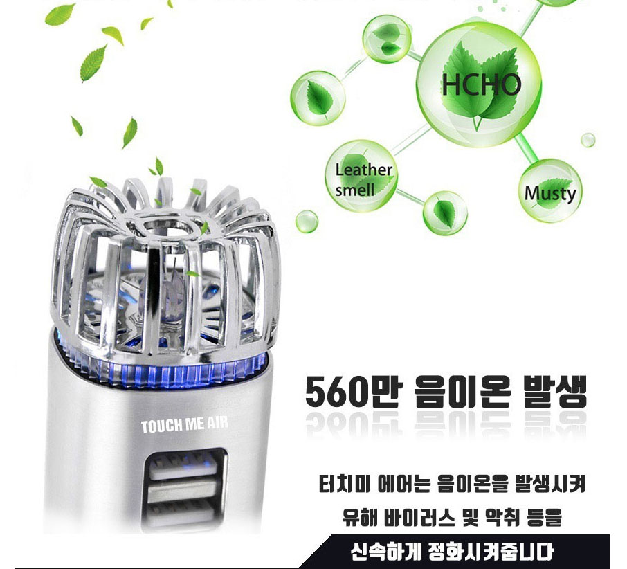 560만 음이온 발생으로 차량 내부 공기속 유해물질과 악취를 신속하게 정화할 수 있습니다.