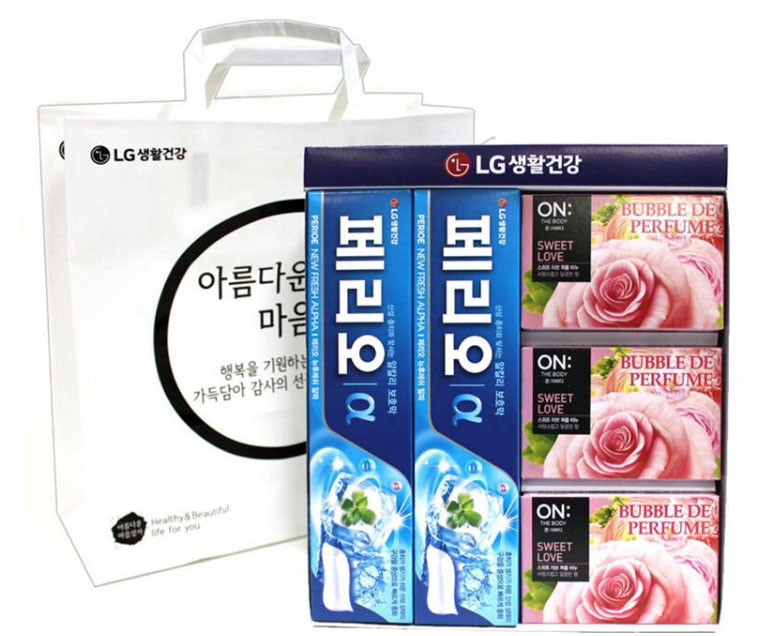 LG Household & Health Care Beautiful Heart Gift Set consists of 2 Perio Toothpaste and 3 Sweet Love Perfume Soaps, a total of 5 items It's well-organized, The price is around 7,000 won!
