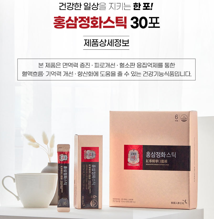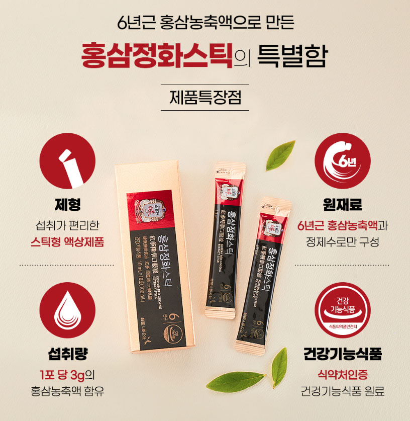 It is a stick-type liquid that is convenient to consume and consists of only 6-year-old red ginseng concentrate and purified water.