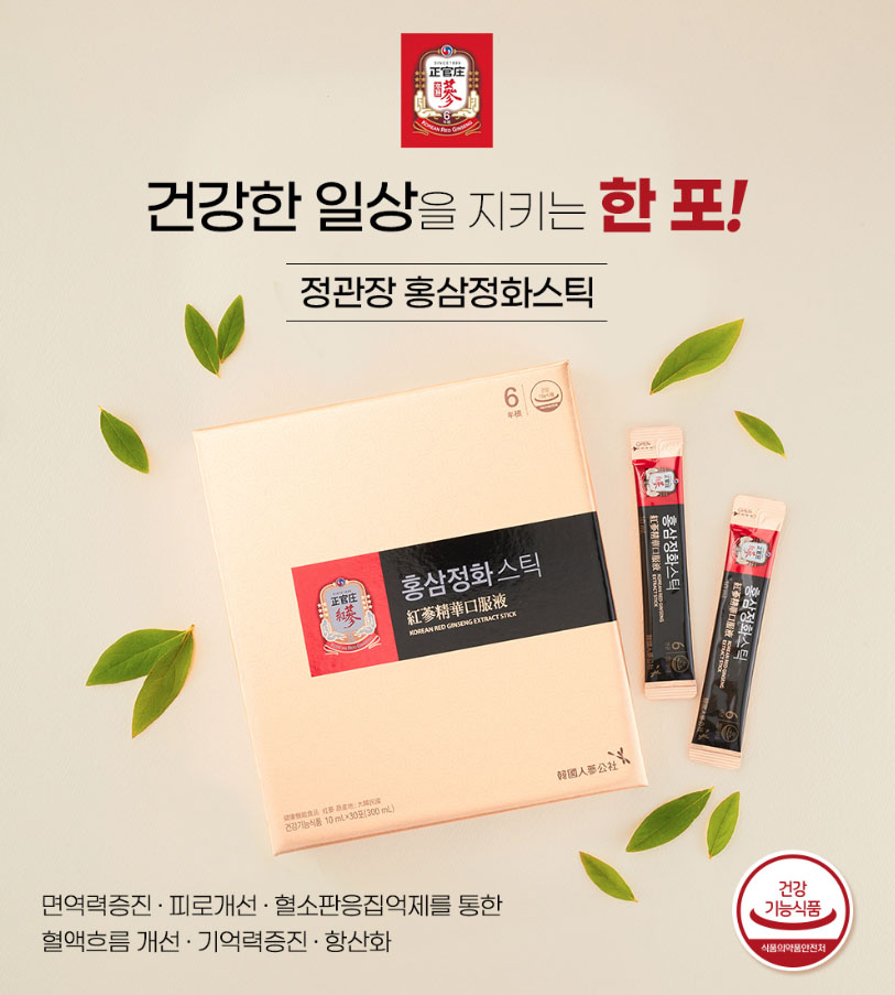 It contains 3g of red ginseng concentrate per package, and only the ingredients for health functional foods certified by the Ministry of Food and Drug Safety were carefully selected and manufactured.