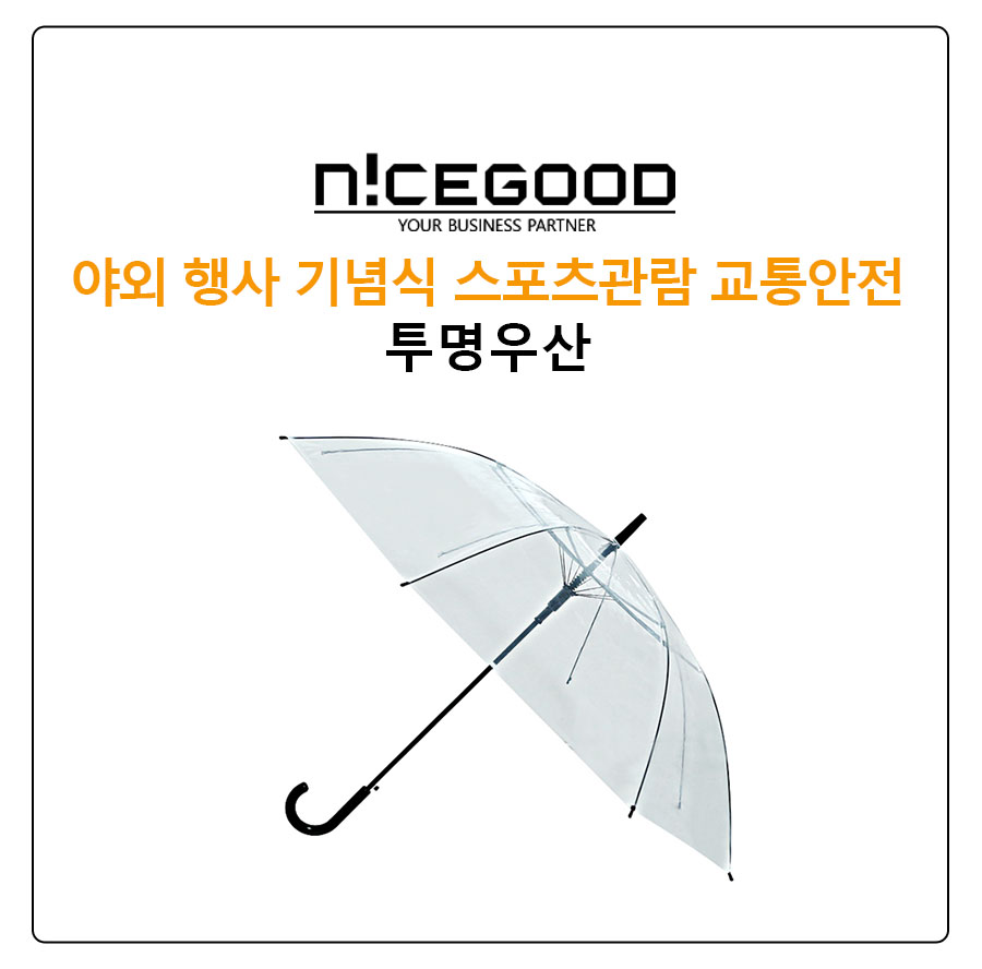 야회행사, 야외공연, 스포츠 관람, 컨서트 등에 우천대비 아이템으로 많은 사랑을 받고 있는 투명우산입니다.