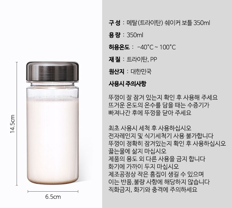 뛰어난 밀폐력을 자랑하는 국내생산 보틀, 가방에 넣고 뛰어도 내용물이 절대 새어 나오지 않고, 트라이탄 원료 사용 제품으로내열과 내한(내냉)성 또한 뛰어난 보틀입니다.